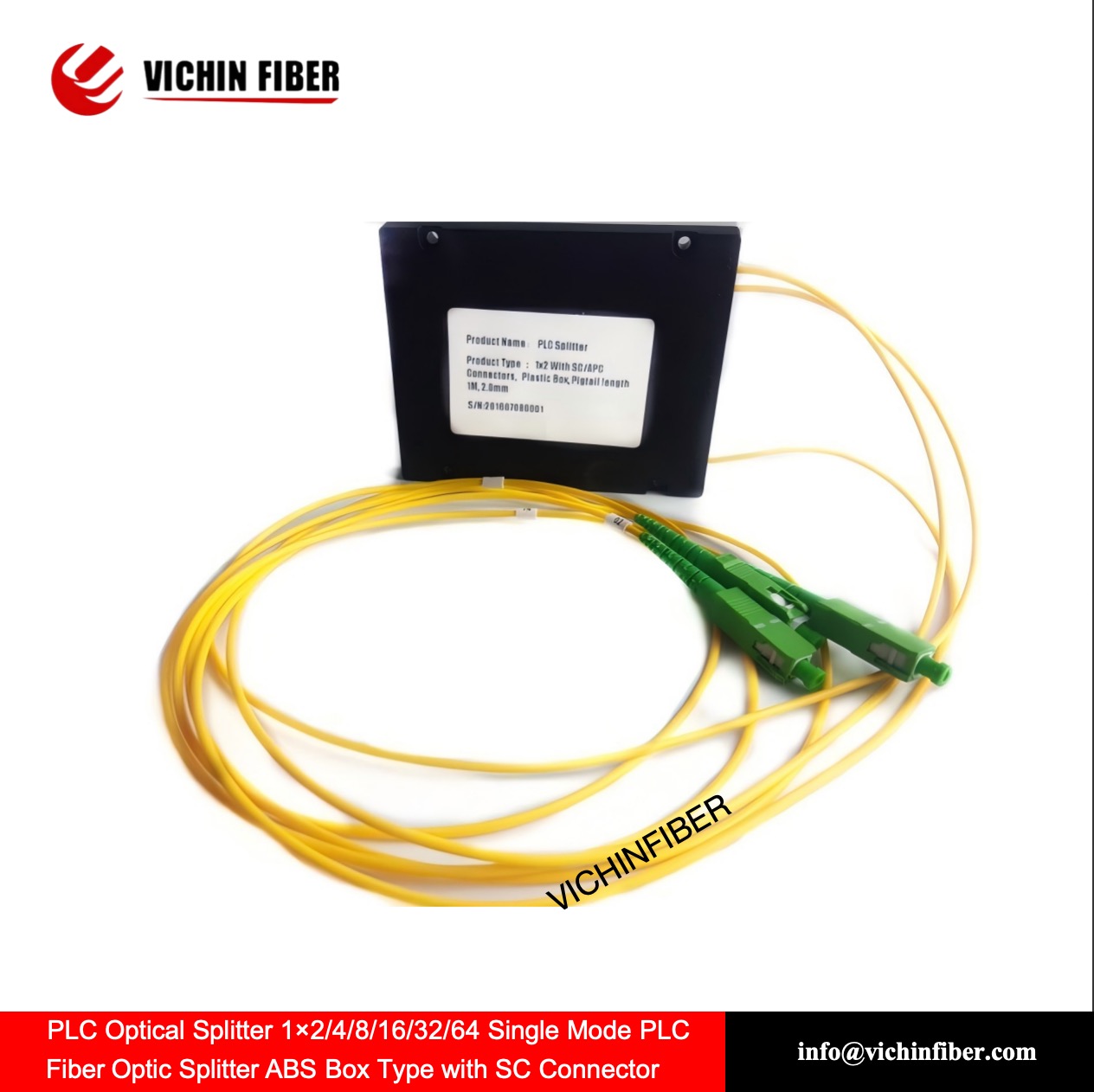 PLC Optical Splitter 1×2/4/8/16/32/64 Single Mode PLC Fiber Optic Splitter ABS Box Type with SC Connector